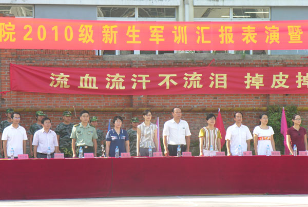 在同学的热烈掌声中,2010级学生军训总结表彰大会结束,为期九天的军训圆满地落下了帷幕。