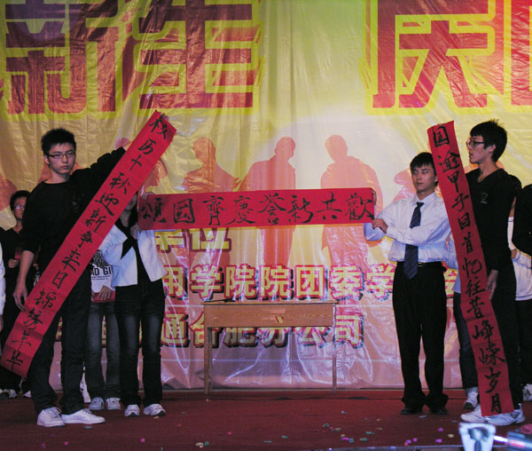 金秋之夜,绚丽多姿,桂香校园。9月29日晚17:00我院2010年“迎新生·庆国庆”青春飞扬文艺联欢晚会在大学生活动中心隆重举行。学院各系党团负责同志及学生处、团委负责同志与广大新生同学共同观看了演出。