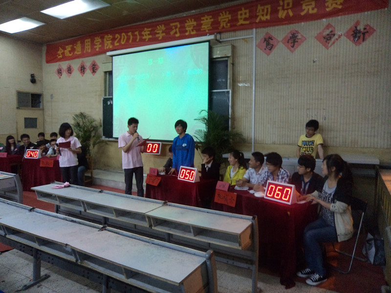 为积极响应胡锦涛总书记提出的“学习党章、遵守党章、贯彻党章、维护党章”的号召,巩固第二十期党校学员对党的基本知识和理论的学习成果,进一步提高全体入党积极分子的思想政治理论素质,我院党校第二届“学习党史、新党章,做时代新先锋”知识竞赛于5月11日19:00在多媒体c104圆满落下帷幕。学生处、团委及各系党团总支、学生支部负责同志出席并观看了比赛。