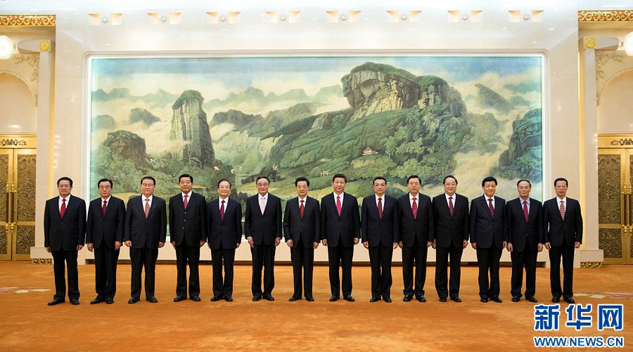 新华社北京11月15日电 (记者邹声文、霍小光)国家主席胡锦涛,新当选的中共中央总书记、中共中央军委主席习近平,十七届中共中央政治局其他常委吴邦国、温家宝、贾庆林、李长春、贺国强、周永康,十八届中共中央政治局其他常委李克强、张德江、俞正声、刘云山、王岐山、张高丽,15日下午在人民大会堂亲切会见了出席党的十八大的代表、特邀代表和列席人员,并同大家合影留念。