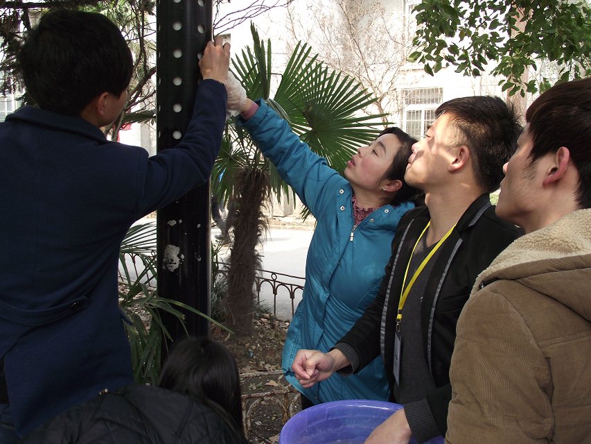 中午12时许,学院青年教职工和学生干部带着清洁球、抹布、水桶等工具,对粘贴在道路两侧路灯、电线杆上和墙上的小广告进行清理。经过一个多小时的努力,道路两侧的小广告被清理干净,环境面貌焕然一新。