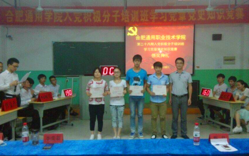 为引导和促进我院入党积极分子深入学习党史新党章的理论知识,检验第二十八期党校学员对党的基本理论知识的学习成果。学院于5月15日晚19:00在综合教学楼201教室举办了第二十八期入党积极分子培训班学习党史新党章知识竞赛。数控与材料工程系团总支书记李荣新老师、信息管理工程系宋艳华老师、团委甄君老师观看了本次比赛。