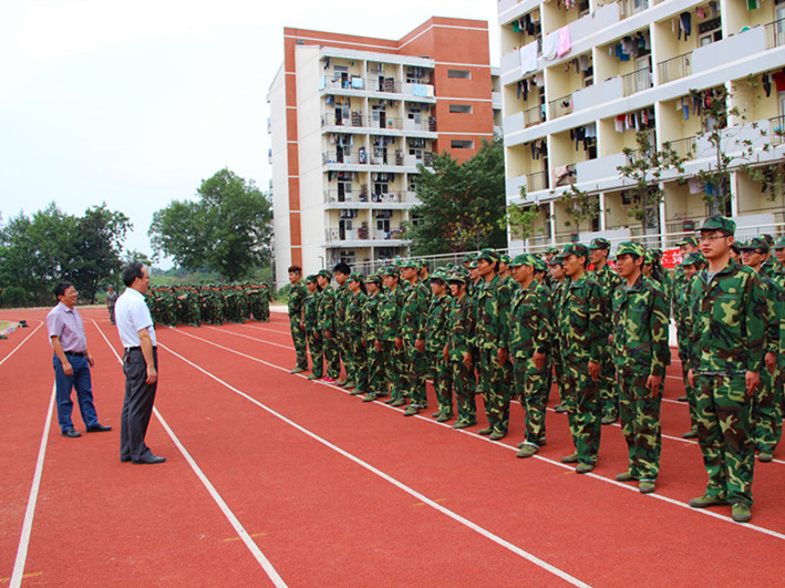 9月21日下午,学院张志勇院长、田启昌副院长,在学生处安忠猛处长和承训部队领导的陪同下,视察了2015级新生军训工作。