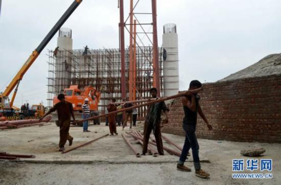 拉合尔轨道交通橙线项目是中巴经济走廊首个正式启动的交通基础设施项目,也是巴基斯坦首条轻轨线路。该项目全长约26公里,总投资16.26亿美元,由中国铁路总公司和中国北方工业公司联合承建,2015年4月20日签订总承包合同,合同工期27个月。项目建成后将极大地缓解拥有500多万人口的拉合尔市的交通压力。同时,该项目的建设将为当地创造上万个就业机会。图为巴基斯坦工人在拉合尔轨道交通橙线项目的建设工地上。