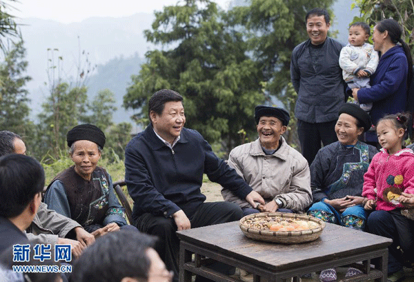 2016年两会,习近平同人大代表湖南湘西土家族苗族自治州州长郭建群交流时,十分关心十八洞村的情况,连连追问“现在人均收入有多少了”“去年有多少人娶媳妇儿”,他说,“我正式提出‘精准扶贫’就是在十八洞村”。