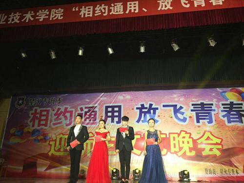 2017年10月19日晚7时,合肥通用职业技术学院“相约通用,放飞青春”2017迎新文艺晚会在大学生俱乐部隆重举行。学院院长张志勇、副院长田启昌、院长助理薛晓妹、招生办主任安忠猛、学生处处长甄君、信息管理工程系党总支书记徐世影、数控与材料工程系党总支书记王燕、院团委书记汤雪花等莅临现场,和全校师生一同观看了晚会。