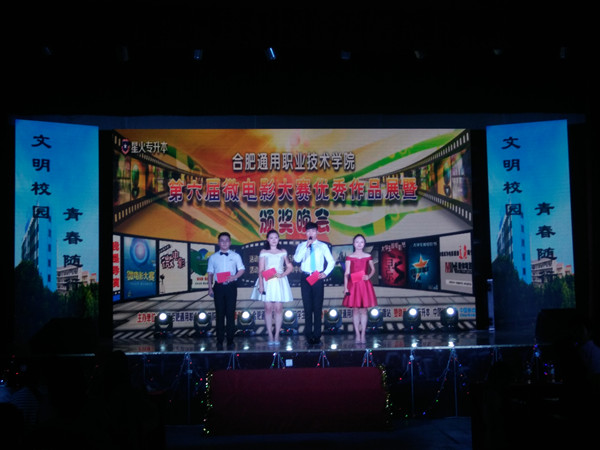 2018年6月14日晚,学院第六届微电影大赛优秀作品展暨颁奖晚会在大学生活动中心圆满落幕。学院党委副书记、院长田启昌,学院各系党总支书记、学生处和团委负责同志及部分师生共同观看了演出。安徽中澳科技职业学院、合肥经济技术职业学院等兄弟院校的学生代表应邀参加晚会,并带来了精彩的节目表演。