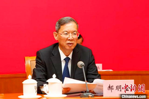 图为全国人大常委会副委员长、中华职业教育社理事长郝明金出席会议并讲话。 中华职业教育社供图