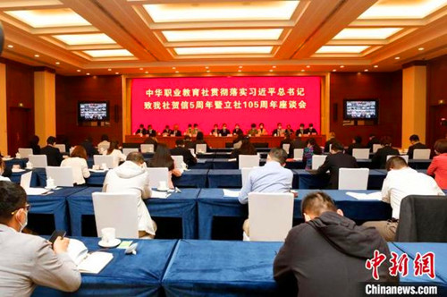 中央统战部副部长陈旭出席座谈会并讲话;教育部副部长、中华职业教育社副理事长孙尧代表有关部委,民进中央副主席、中华职业教育社副理事长王刚代表各民主党派中央,欧美同学会党组书记、秘书长王丕君代表统战系统群团分别向大会致词。