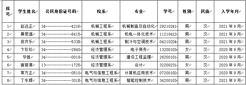 按照国家和省厅有关国家奖学金评审的要求和《合肥通用职业技术学院国家奖学金国家励志奖学金国家助学金评选实施办法》(通院字[2019] 29号)文件规定,经个人申请,经相关部门逐级考核评审,现拟推荐下列同学为合肥通用职业技术学院2021-2022学年国家奖学金获得者: